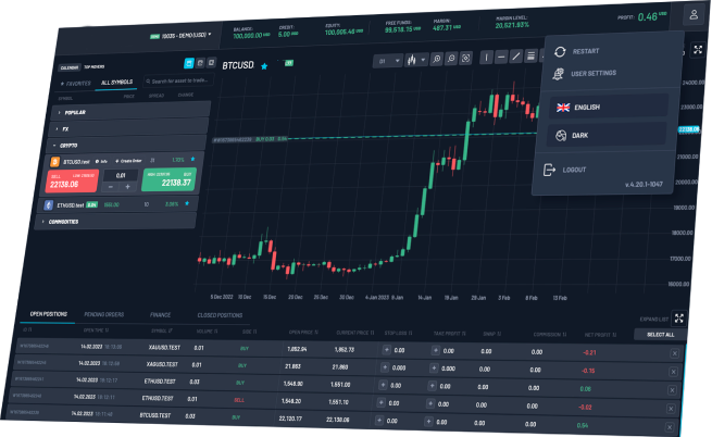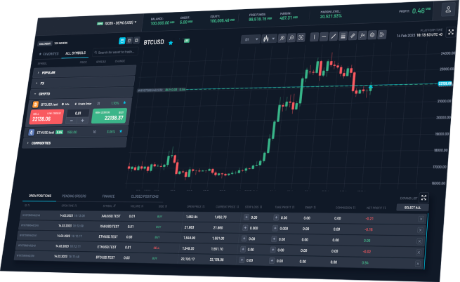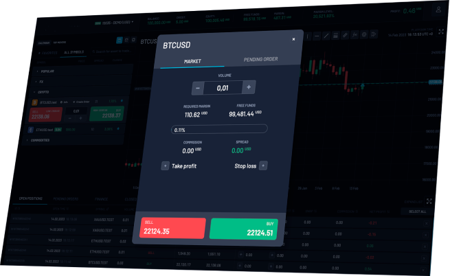 Use the flexible trading environment for your ultimate benefit. Customize the tools, go short or long on the market, set up your pending orders, and Take Profit/Stop Loss levels. Find your way to trade with comfort.